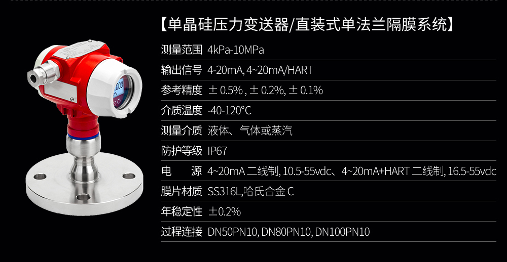 SIN-P3000G單晶硅壓力變送器用于測量液體、氣體或蒸汽的液位、密度、壓力,然后將其轉變成4-20mAHART電流信號輸出,也可與HART375或BST Modem相互通信,通過他們進行參數設定、過程控制。與傳統壓力變送器的區別在于它使用的是納米單晶硅作為傳感器材料。