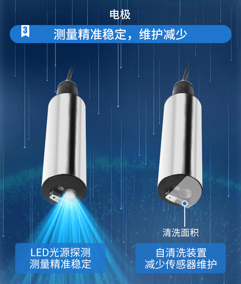 濁度/污泥濃度傳感器的原理基于組合紅外吸收散射光線法,應用ISO7027方法可以連續并精確地測定濁度或污泥濃度。